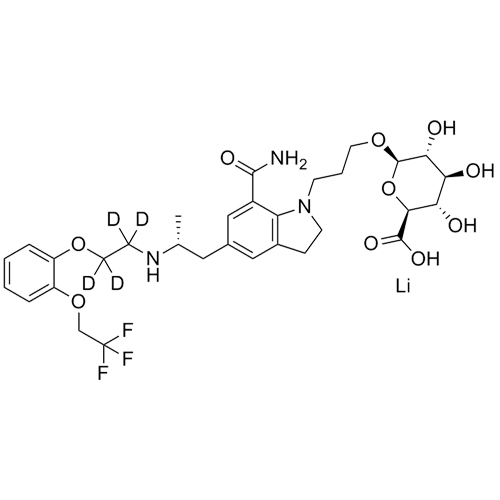 - Synonyms(R)-1-(3-hydroxypropyl)-5-(2-((2-(2-(2,2,2-trifluoroethoxy)phenoxy)ethyl)amino)propyl)indoline-7-carboxamide-D4; 2,3-Dihydro-1-(3-hydroxypropyl)-5-[(2R)-2-[[2-[2-(2,2,2-trifluoroethoxy)phenoxy]ethyl]amino]propyl]-1H-indole-7-carboxamide-d4; (R)-1-(3-Hydroxypropyl)-5-[2-[[2-[2-(2,2,2-trifluoroetho...