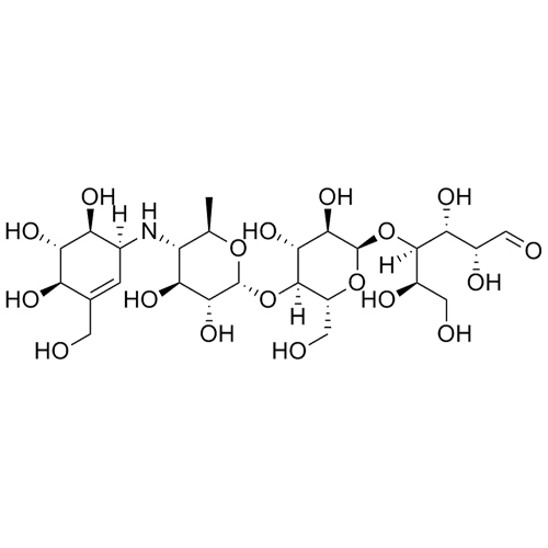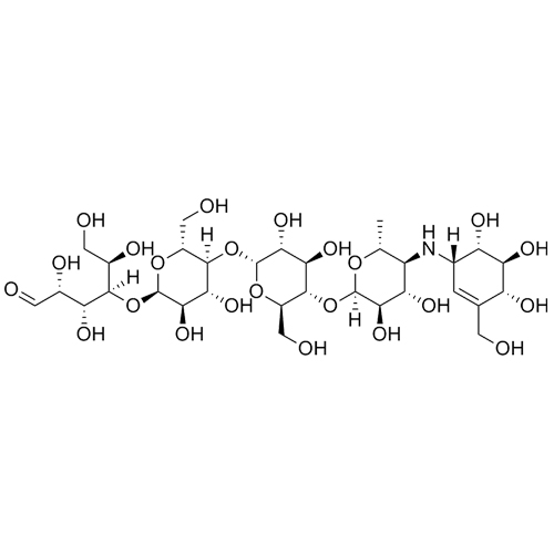 Acarbose Impurity B is a fully characterized chemical compound used as a reference standard of API Acarbose. The standard offered is compliant with regulatory guidelines. Acarbose Impurity B is used for analytical method development, method validation (AMV), and Quality Controlled (QC) applications during synthesis and formulation stages of drug development and serves as a reference standard for traceability against pharmacopeial standards (USP or EP). Axios Research products are intended for analytical purposes only and are not for human use. CAS - 1220983-54-9