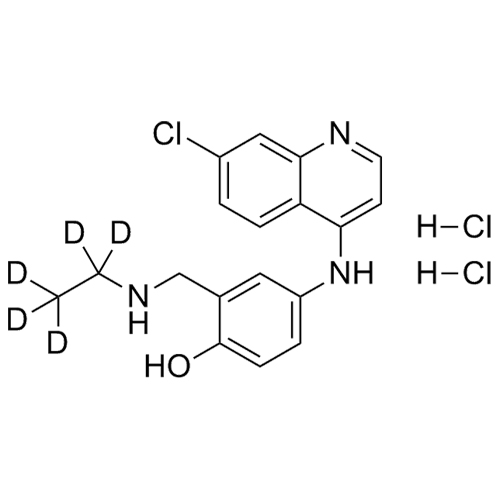 N-Desethyl Amodiaquine DiHCl is a fully characterized chemical compound used as a reference standard of API Amodiaquine. The standard offered is compliant with regulatory guidelines. N-Desethyl Amodiaquine DiHCl is used for analytical method development, method validation (AMV), and Quality Controlled (QC) applications during synthesis and formulation stages of drug development and serves as a reference standard for traceability against pharmacopeial standards (USP or EP). Axios Research products are intended for analytical purposes only and are not for human use. CAS - 79049-30-2
