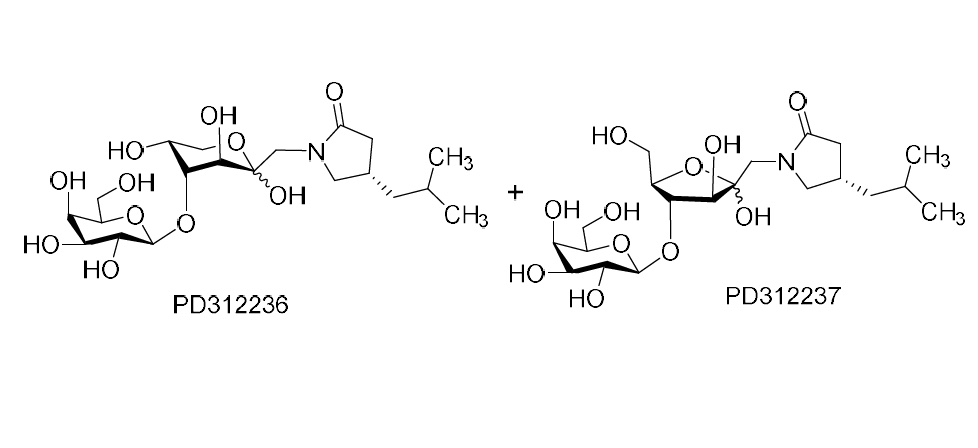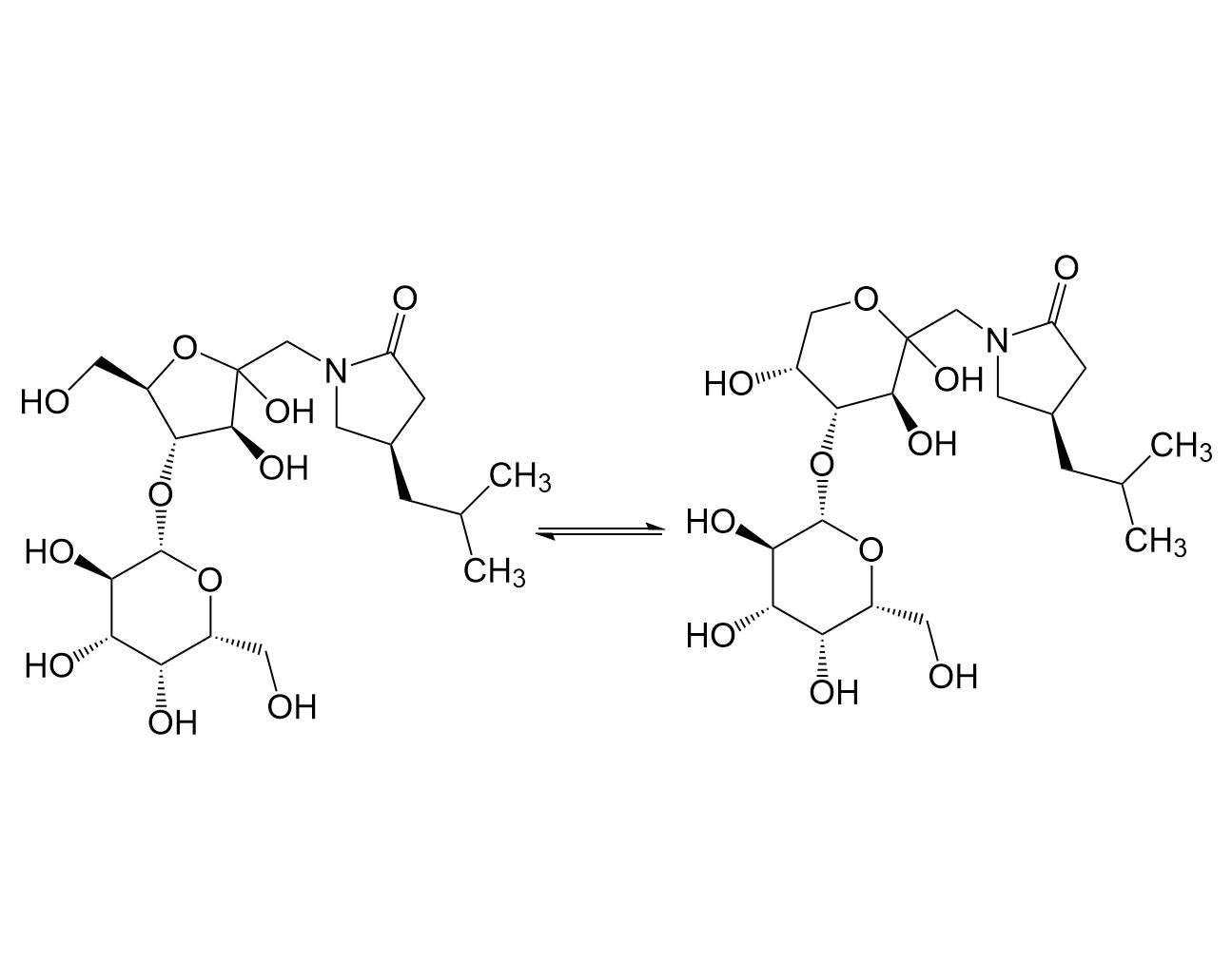 - Synonymsβ-D-Fructopyranose, 1-deoxy-4-O-β-D-galactopyranosyl-1-[(4S)-4-(2-methylpropyl)-2-oxo-1-pyrrolidinyl]- (9CI, ACI) and β-D-Fructofuranose, 1-deoxy-4-O-β-D-galactopyranosyl-1-[(4S)-4-(2-methylpropyl)-2-oxo-1-pyrrolidinyl]- (9CI, ACI)